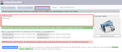 É possível Anexar uma imagem da tela que se está gerando o Atendimento utilizando a opção: Anexar foto da tela.